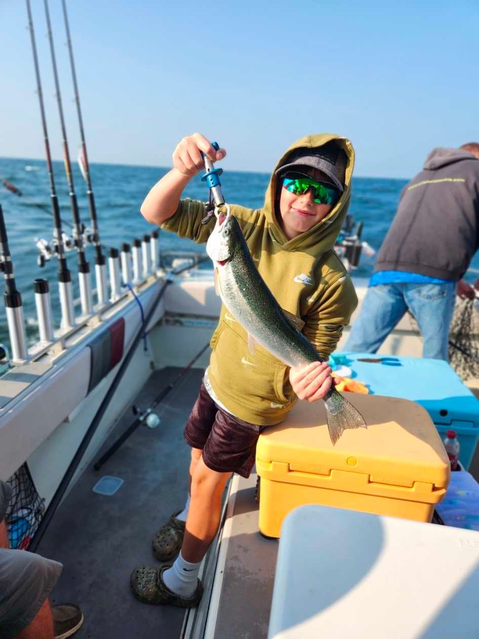 Captain Keith runs a tight ship when it comes to tackle and technique. For steelhead, we're typically trolling spoons and body baits at various depths, watching the fish finder for those telltale marks. The key is covering water and finding the temperature breaks where these fish like to cruise. Walleye fishing is a different game entirely – we'll be working bottom bouncers, crawler harnesses, and jigging spoons over the structure. The boat's rigged with quality rods and reels that can handle both the screaming runs of a big steelhead and the subtle taps of walleye. Don't worry if you're new to this – Captain Keith will get you dialed in quickly. He's got the patience to teach proper technique and the experience to know exactly where to position the boat. GPS and fish finders are constantly working to keep us on productive water, but it's Captain Keith's reading of conditions, water color, and fish behavior that really makes the difference.